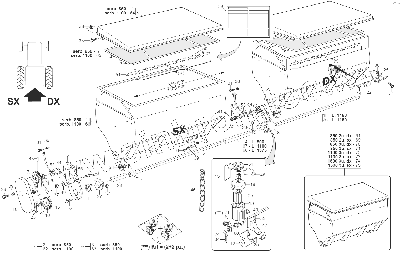 Каталог запасных частей к технике: Gaspardo SP. PLASTIC FERTILIZER SPREADER TANKS