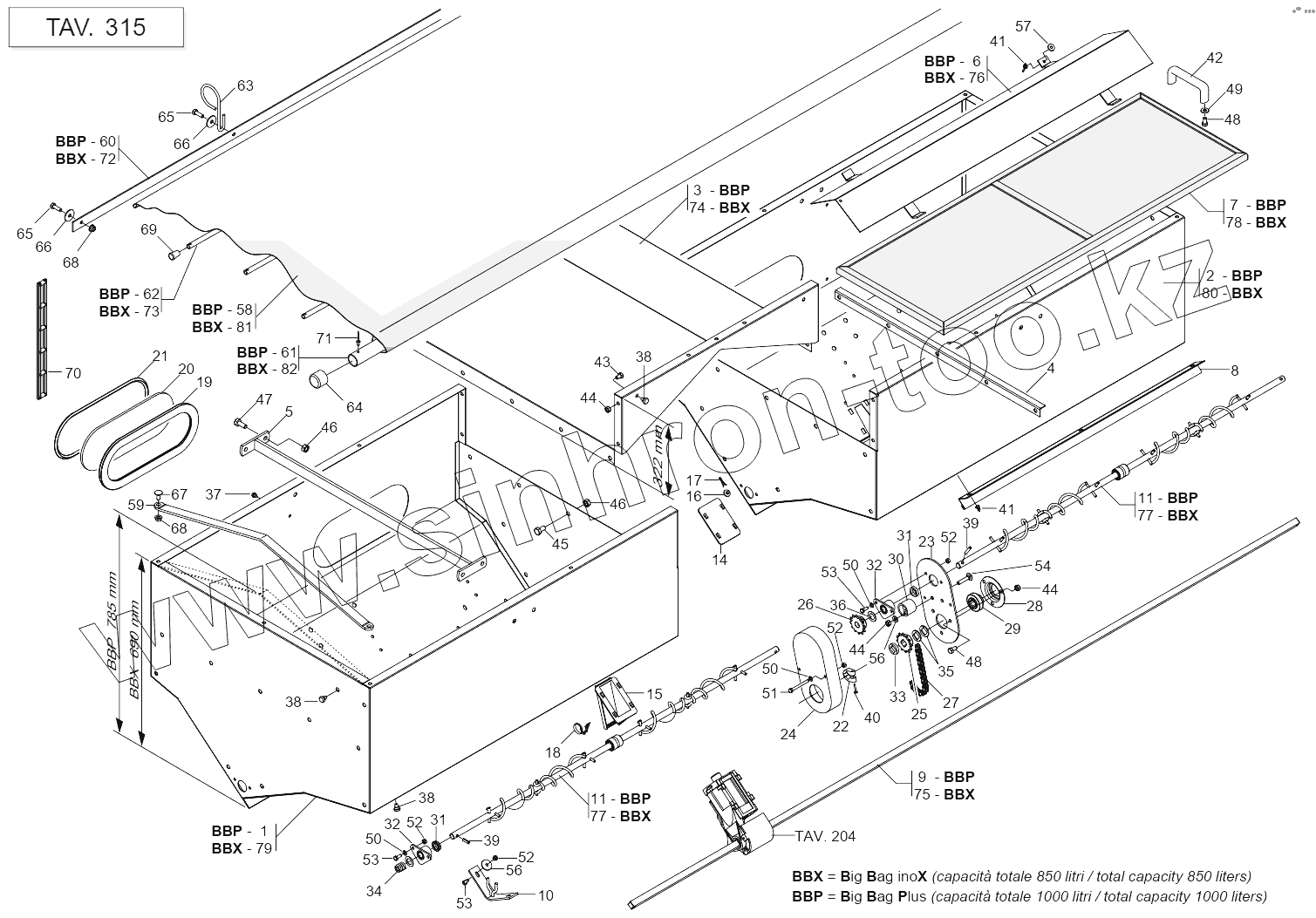 Каталог запасных частей к технике: Gaspardo SP. SINGLE FERTILIZER SPREADER