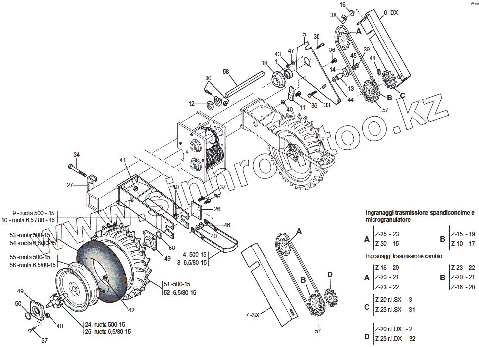 Каталог запасных частей к технике: Gaspardo SP DORADA. TRANSMISSION WHEELS