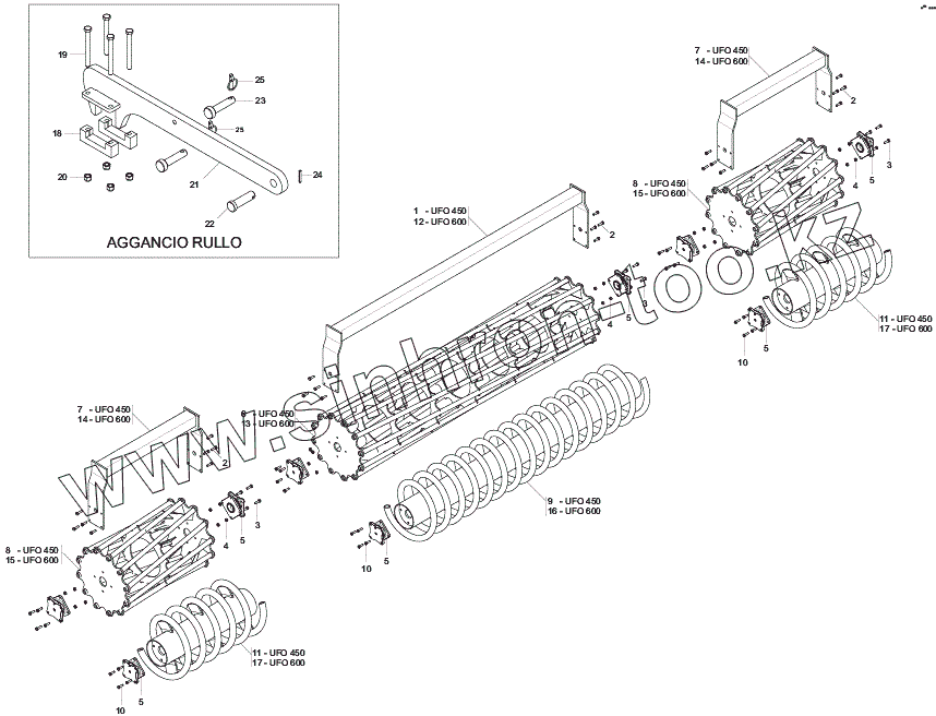 Каталог запасных частей к технике: Gaspardo UFO. CAGE ROLLERS AND SPIRAL ROLLERS UFO 450-600