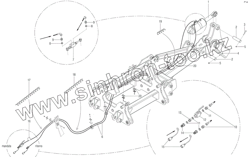 Каталог запасных частей к технике: Gaspardo UFO TZAR. TOWING TROLLEY HYDRAULIC PLANT