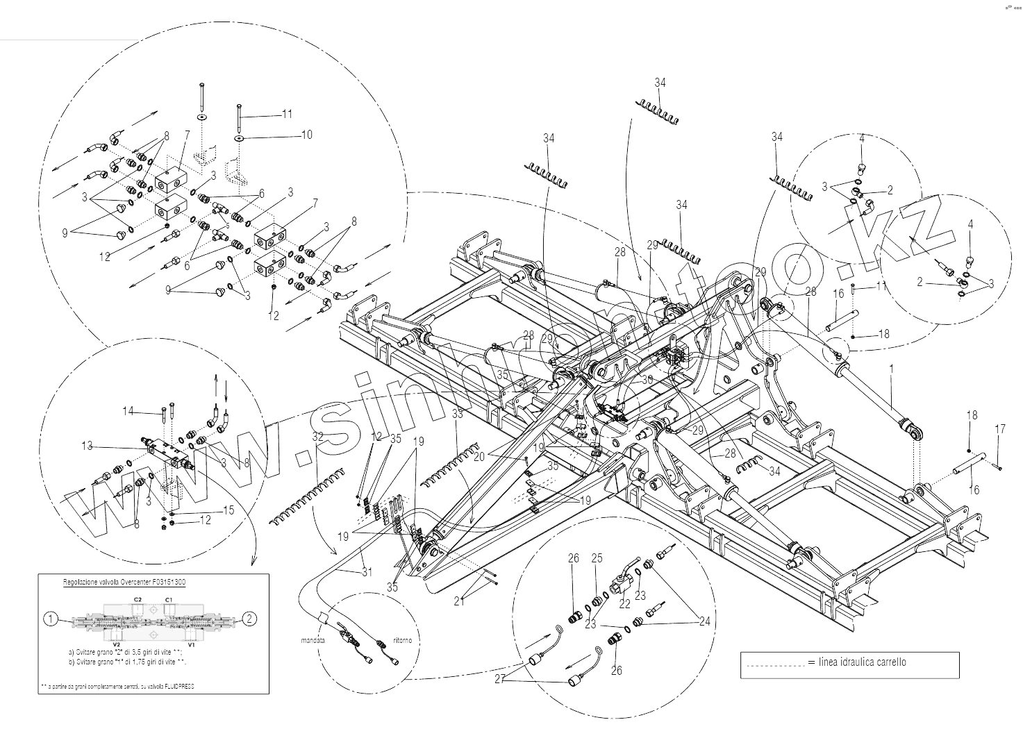 Каталог запасных частей к технике: Gaspardo UFO TZAR C. Hydraulic plant side frames 600