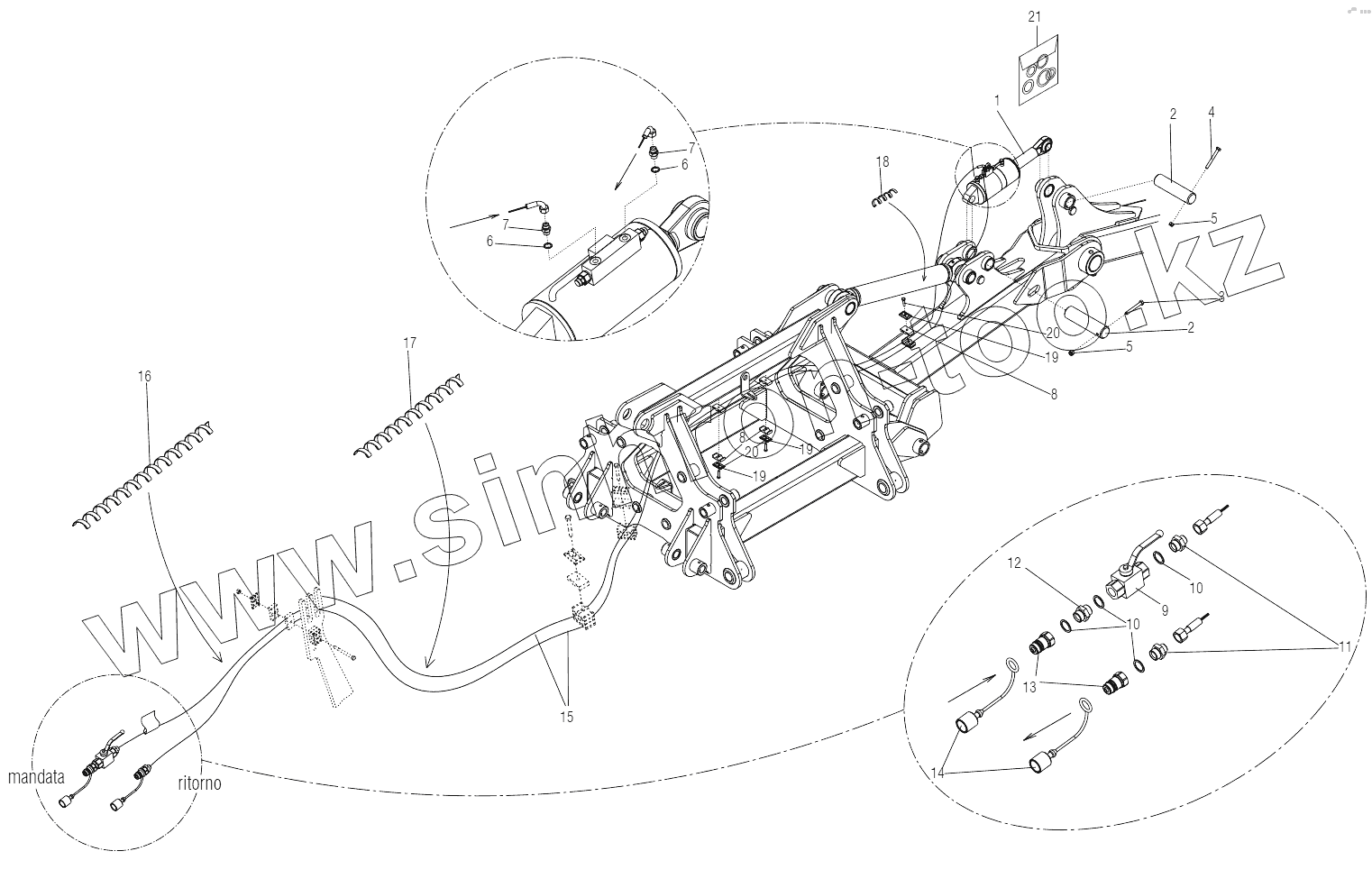 Каталог запасных частей к технике: Gaspardo UFO TZAR C. Hydraulic plant towing trolley 600