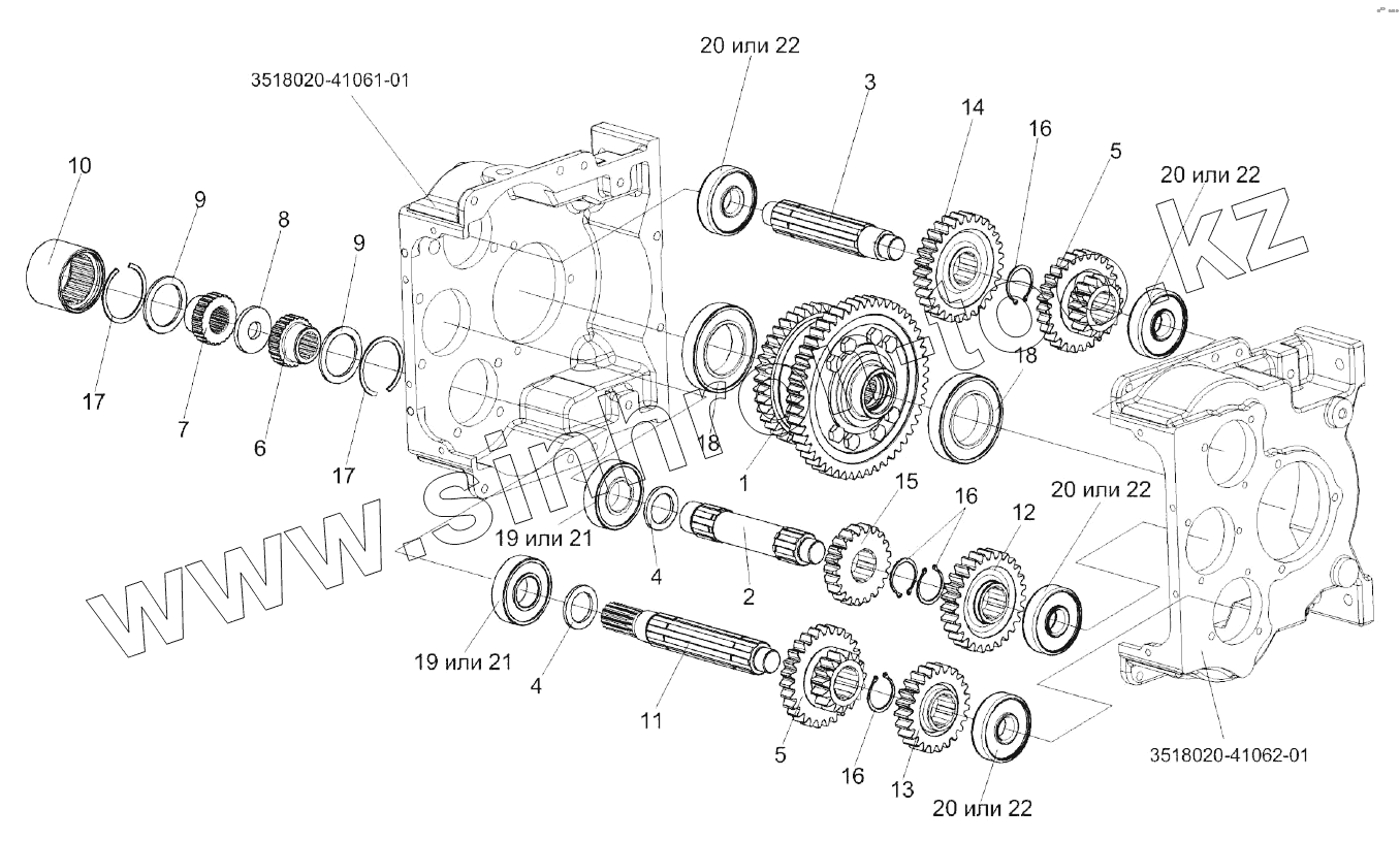 Коробка диапазонов 3518020-46150 (валы, шестерни)