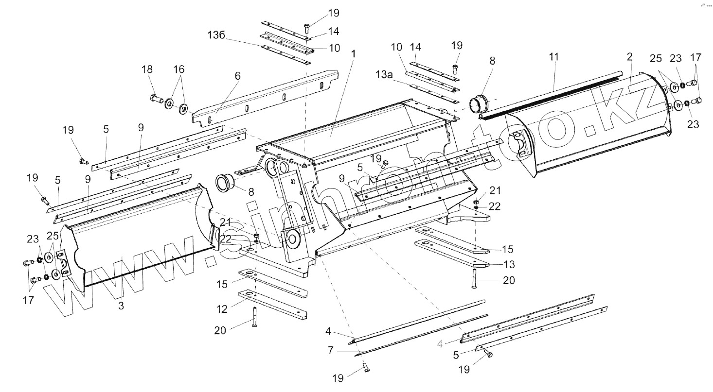 Каталог запасных частей к технике: Гомсельмаш FS80-2. Устройство доизмельчающее КВС-1-0148310 (установка кожухов)