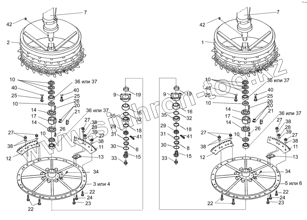 Каталог запасных частей к технике: Гомсельмаш КДП-3000 Палессе FT40. Барабаны с приводом ПКК 0202300