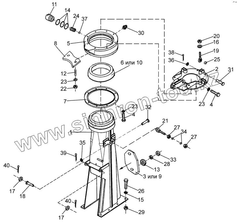 Каталог запасных частей к технике: Гомсельмаш КДП-3000 Палессе FT40. Основание силосопровода КПТ 0103000Б