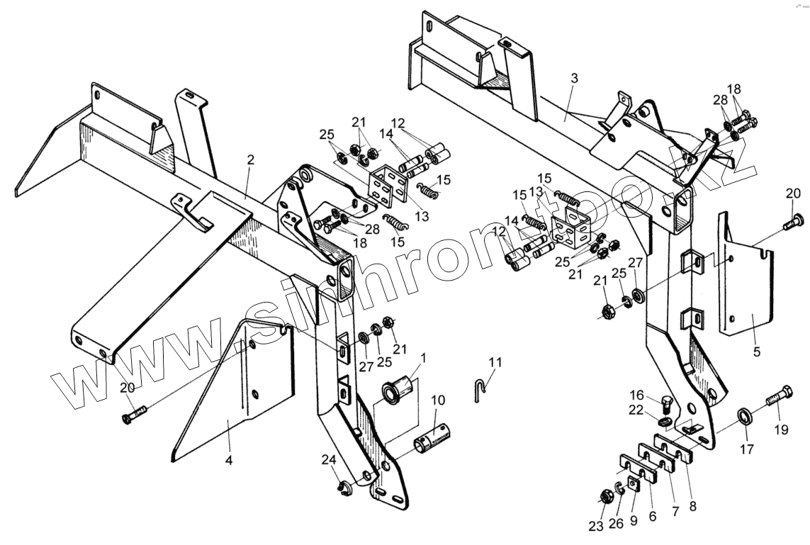Каталог запасных частей к технике: Гомсельмаш КДП-3000 Палессе FT40. Рама навески ПКК 0205070