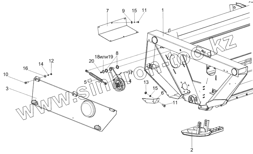 Каталог запасных частей к технике: Гомсельмаш КГС-0200000. Жатка для трав КГС 0200000 (вид справа)