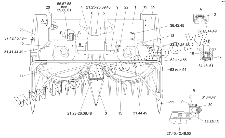 Каталог запасных частей к технике: Гомсельмаш КГС-0800000. Жатка КГС 0800010 (вид сверху)