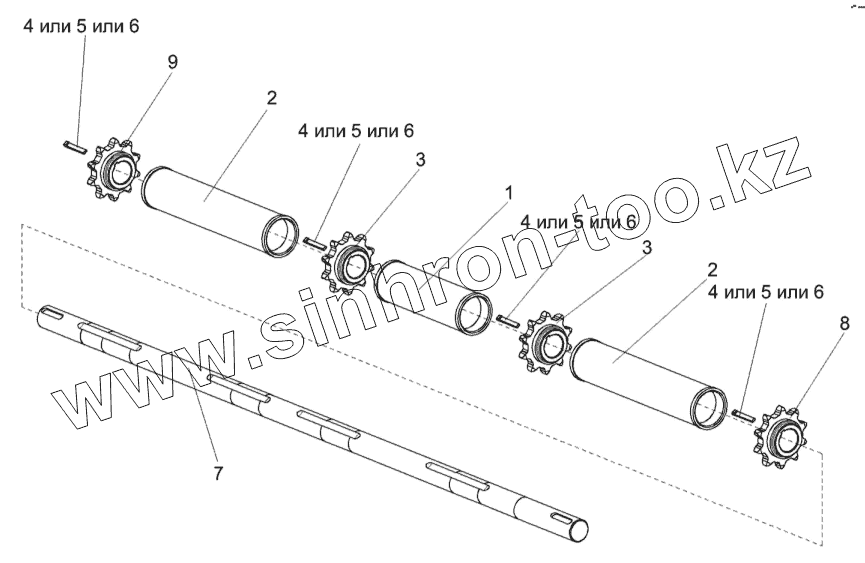 Каталог запасных частей к технике: Гомсельмаш КОК-6. Вал верхний КЗК-12-1-0502050