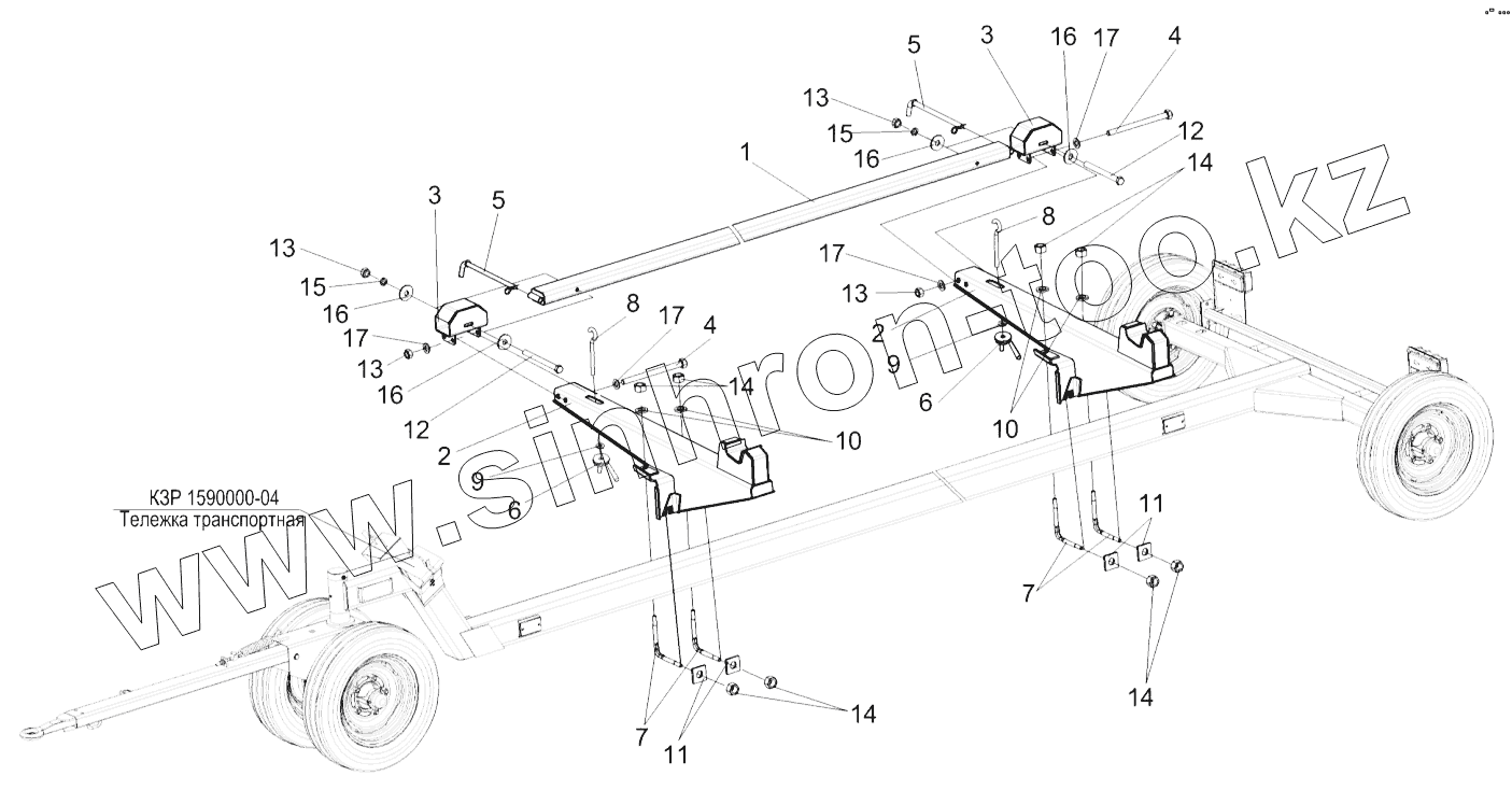 Каталог запасных частей к технике: Гомсельмаш КОК-8-2. Установка монтажных изделий на тележку транспортную