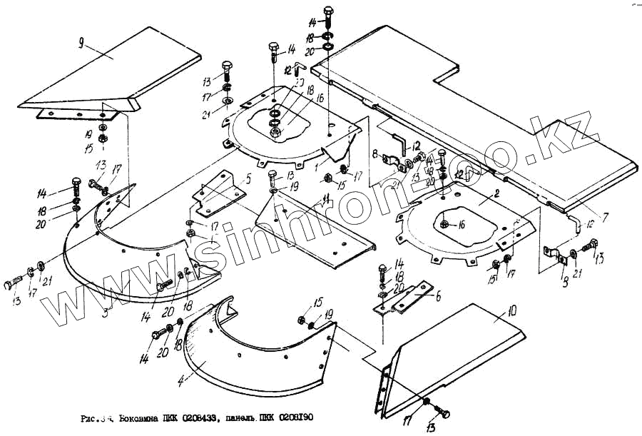 Каталог запасных частей к технике: Гомсельмаш КПК Полесье-3000. Боковина ПКК 0208433, панель ПКК 0208190