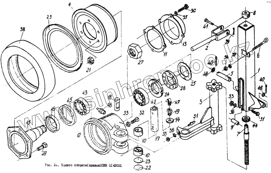 Каталог запасных частей к технике: Гомсельмаш КПК Полесье-3000. Колесо опорное правое ПКК 0143000