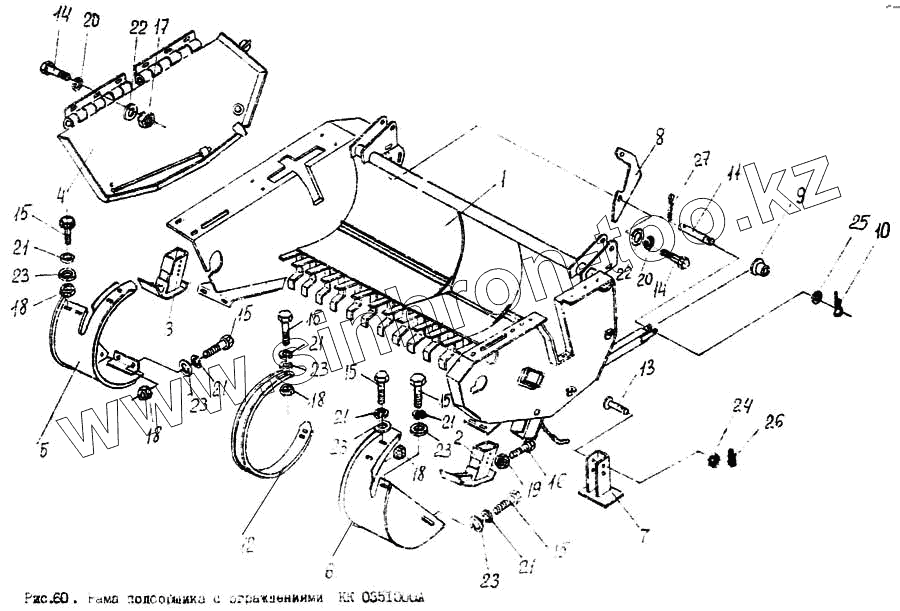 Каталог запасных частей к технике: Гомсельмаш КПК Полесье-3000. Рама подборщика с ограждениями ПКК 0351000A