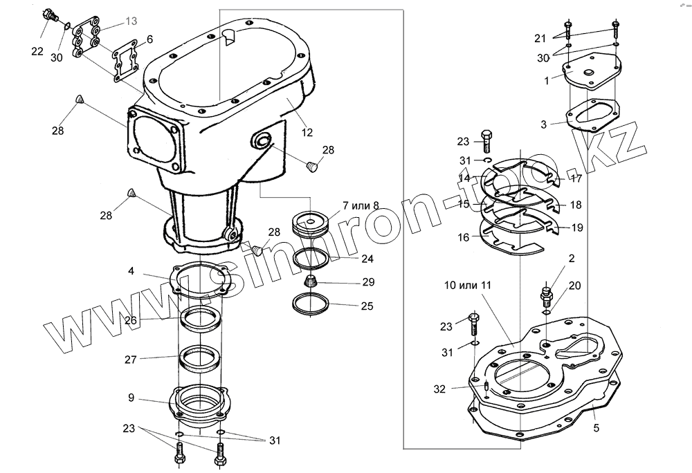 Каталог запасных частей к технике: Гомсельмаш КПК Полесье-3000. Редуктор (корпус и крышки)