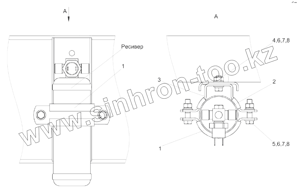 Каталог запасных частей к технике: Гомсельмаш KС-100. Установка ресивера КС-100-0121090