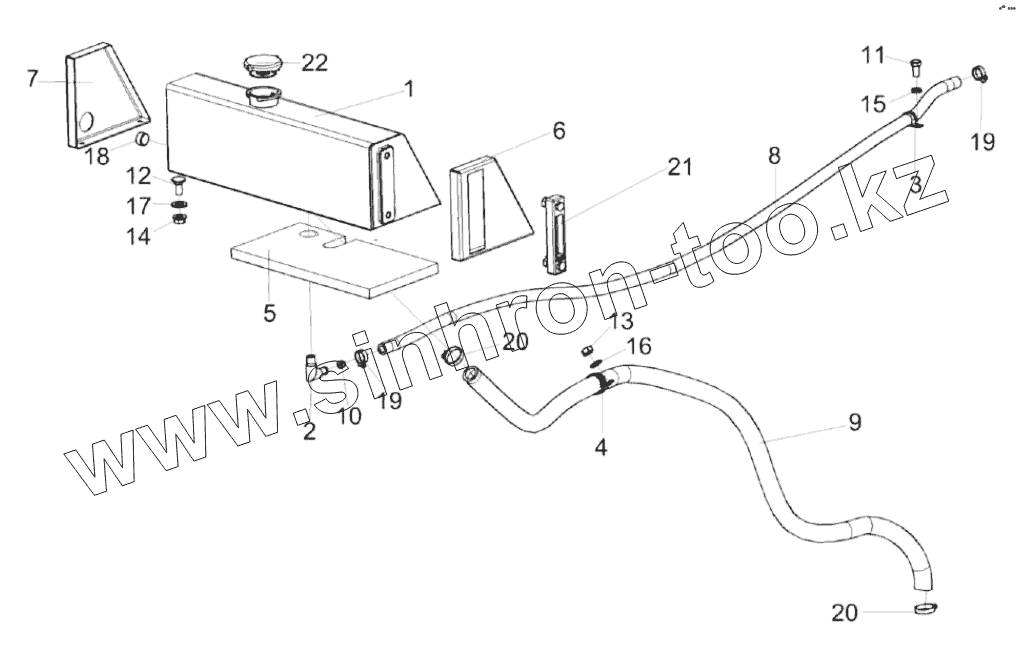 Каталог запасных частей к технике: Гомсельмаш KС-100. Установка бачка расширительного КС-100-0116070
