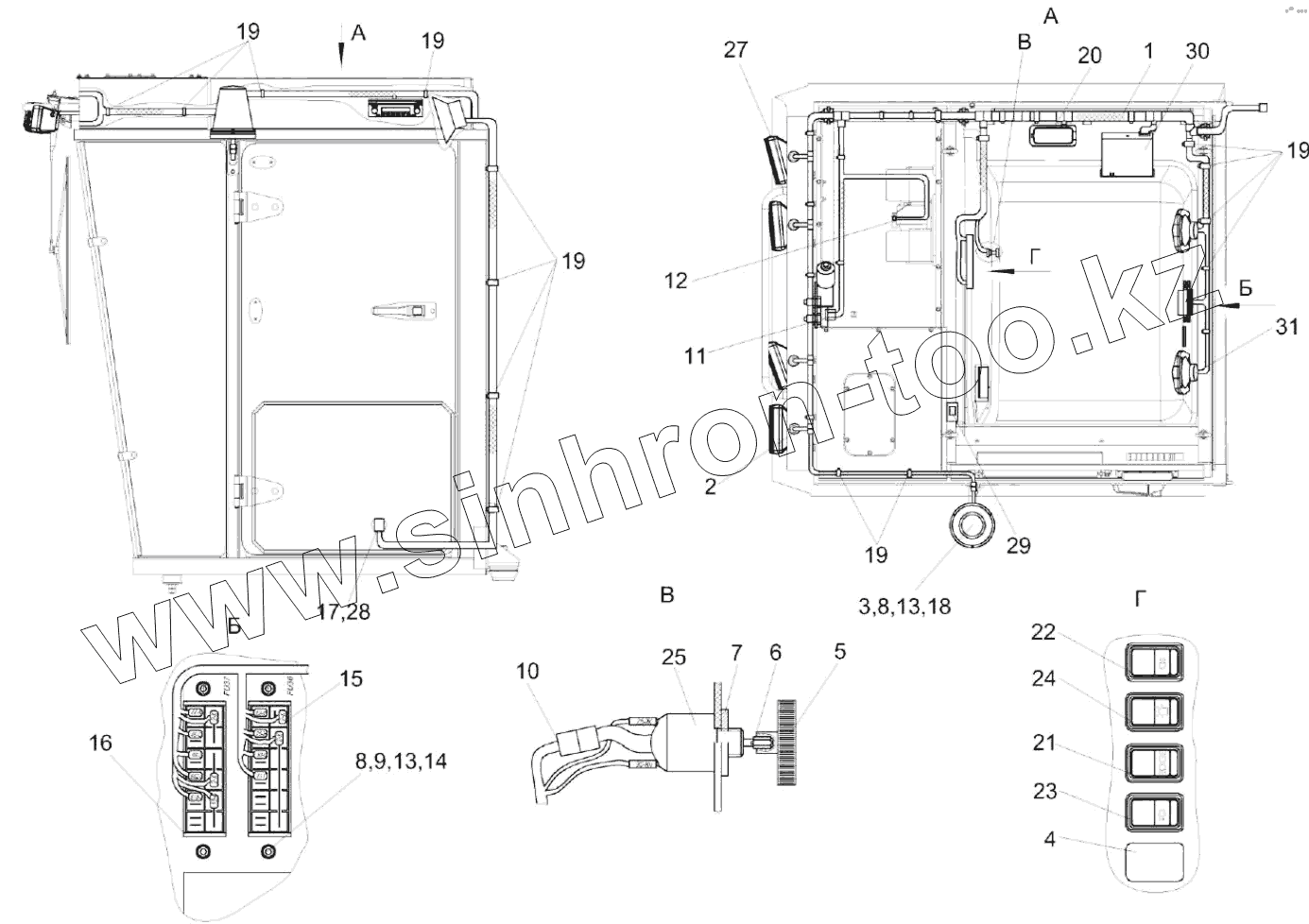 Каталог запасных частей к технике: Гомсельмаш KС-100. Установка электрооборудования кабины КС-100-0722000