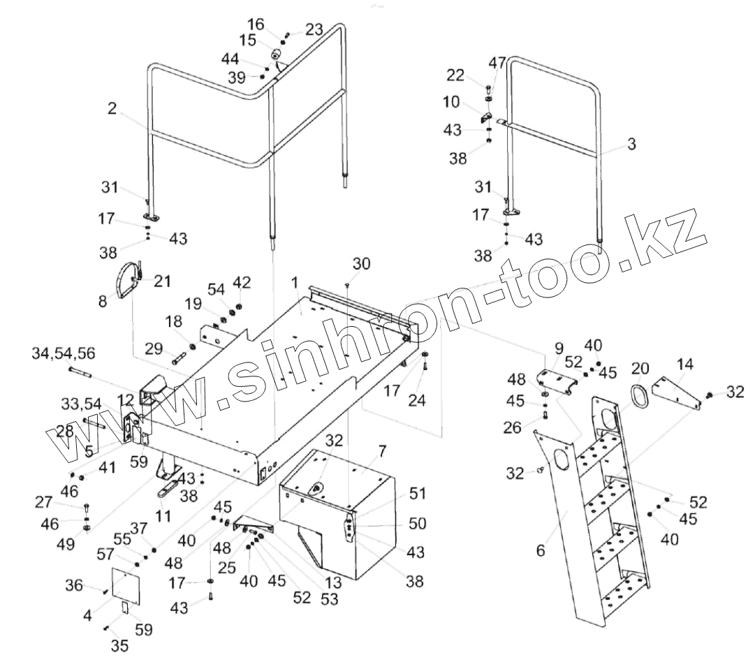 Каталог запасных частей к технике: Гомсельмаш KС-100. Установка площадки входа КС-100-2-0134000