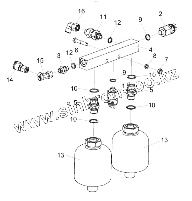 Каталог запасных частей к технике: Гомсельмаш KС-150С. Блок пневмогидроаккумуляторов КС-150С-0601330
