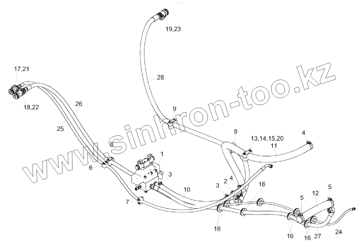 Каталог запасных частей к технике: Гомсельмаш KС-150С. Гидросистема рабочих органов КС-150С-0604000