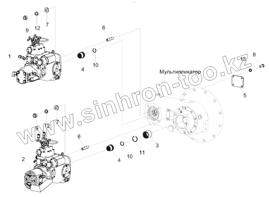 Каталог запасных частей к технике: Гомсельмаш KС-150С. Установка гидронасосов КС-150С-0138000