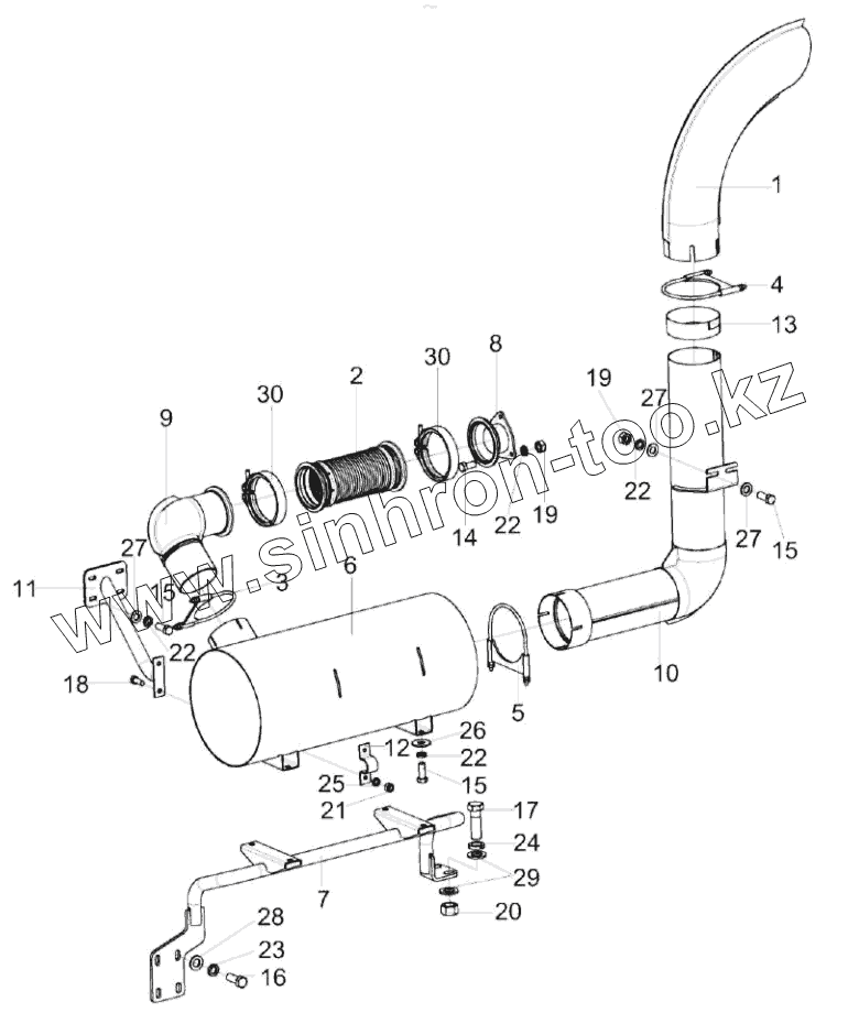 Каталог запасных частей к технике: Гомсельмаш KС-150С. Установка глушителя КС-150С-0116060