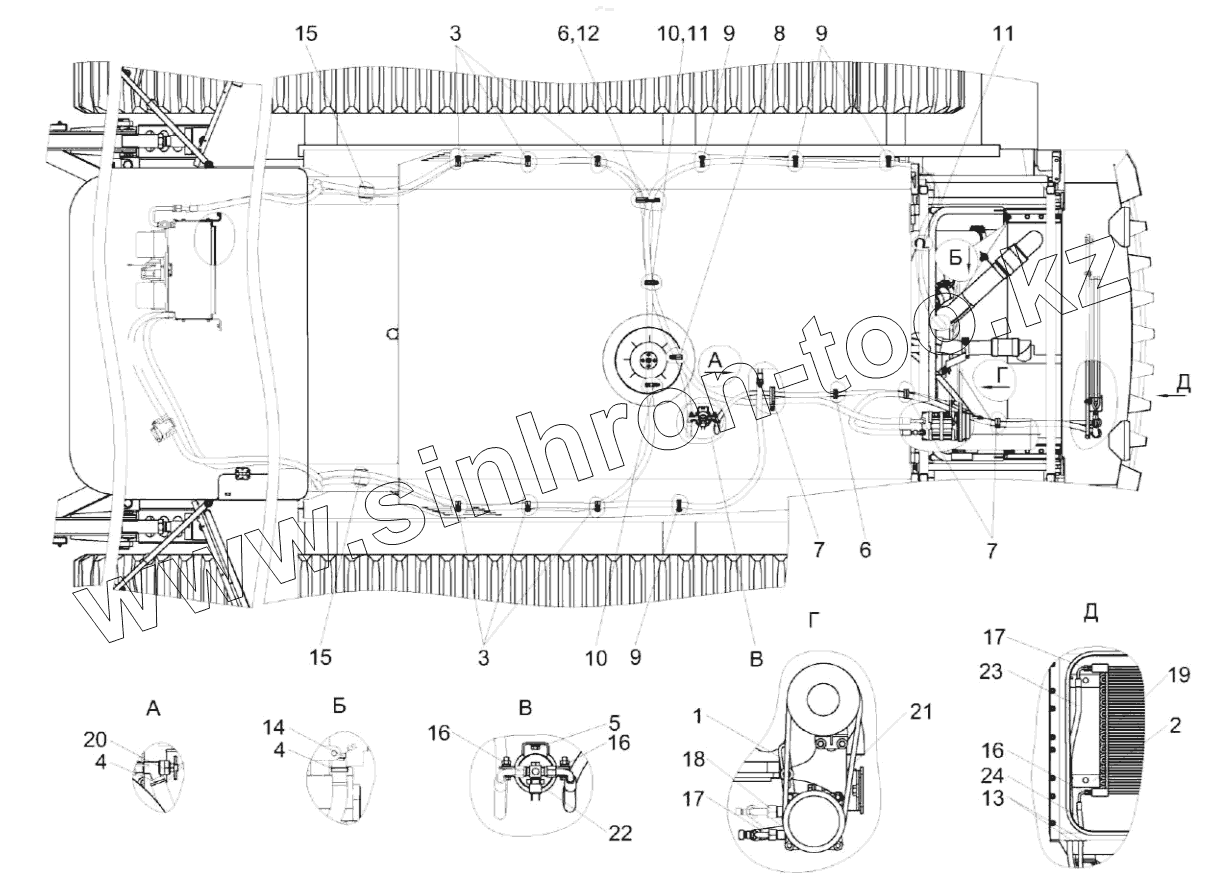 Каталог запасных частей к технике: Гомсельмаш KС-150С. Установка оборудования кондиционера КС-150С-0121010