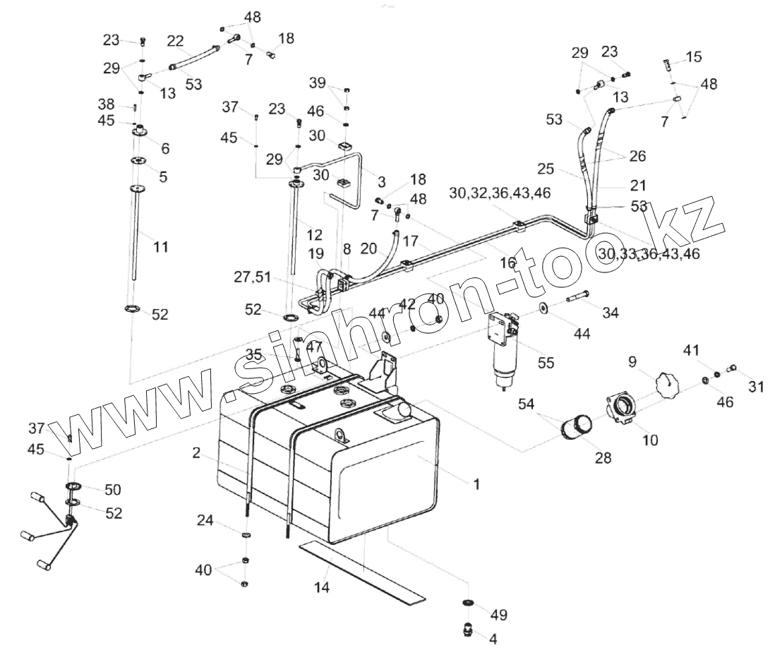 Каталог запасных частей к технике: Гомсельмаш KС-150С. Установка топливного оборудования КС-150С-0123000