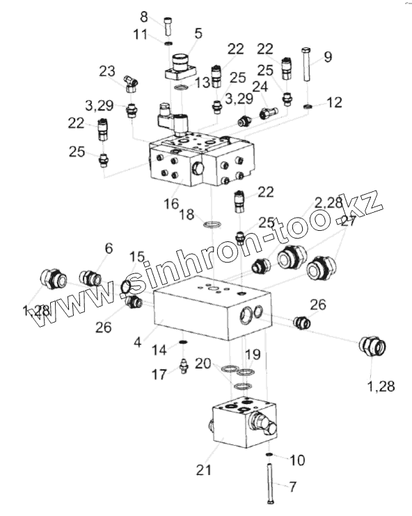Каталог запасных частей к технике: Гомсельмаш KС-200. Гидроблок межколесной блокировки КС-200-0601330Э1