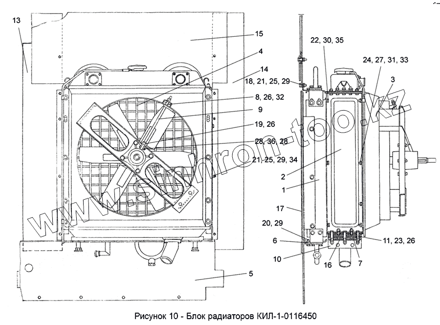 Каталог запасных частей к технике: Гомсельмаш КСК-100А-3. КИЛ-1-0116450 Блок радиаторов