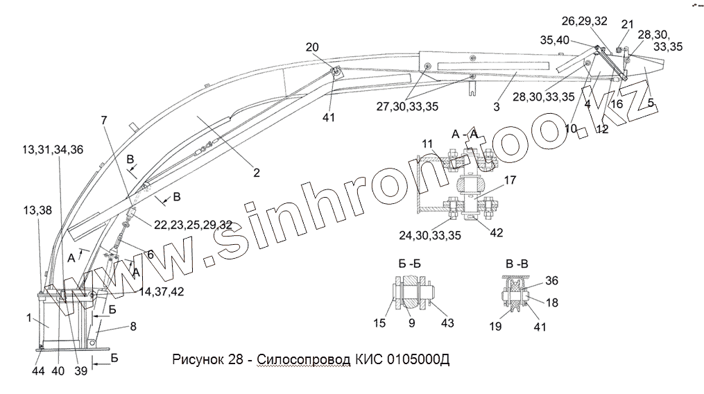 Каталог запасных частей к технике: Гомсельмаш КСК-100А-3. КИС 0105000Д Силосопровод