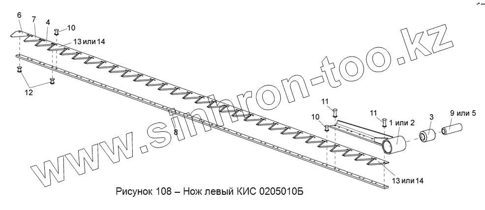 Каталог запасных частей к технике: Гомсельмаш КСК-100А-3. КИС 0205010Б Нож левый