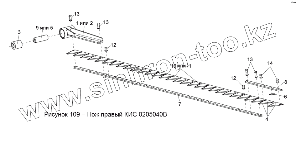 Каталог запасных частей к технике: Гомсельмаш КСК-100А-3. КИС 0205040В Нож правый