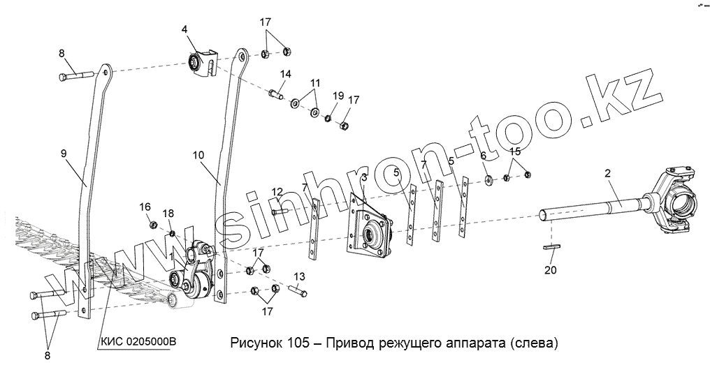 Каталог запасных частей к технике: Гомсельмаш КСК-100А-3. Привод режущего аппарата (слева)