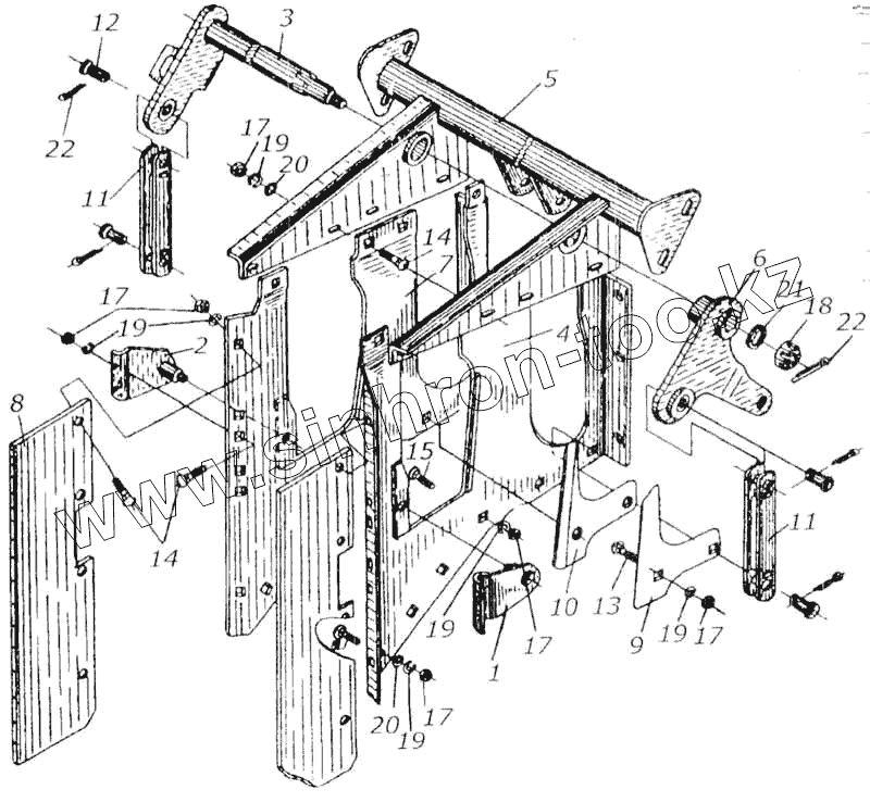 Каталог запасных частей к технике: Гомсельмаш КСК-100А. Аппарат питающий. Каркас