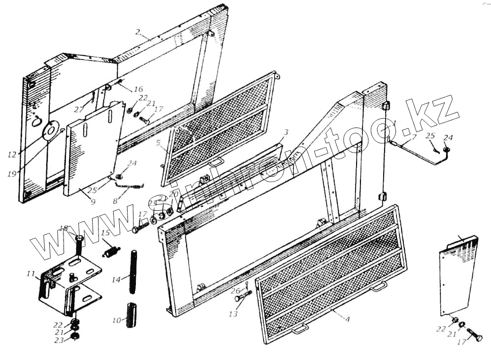 Каталог запасных частей к технике: Гомсельмаш КСК-100А. Боковины капотов КИЛ 0128040 и КИЛ 0128050