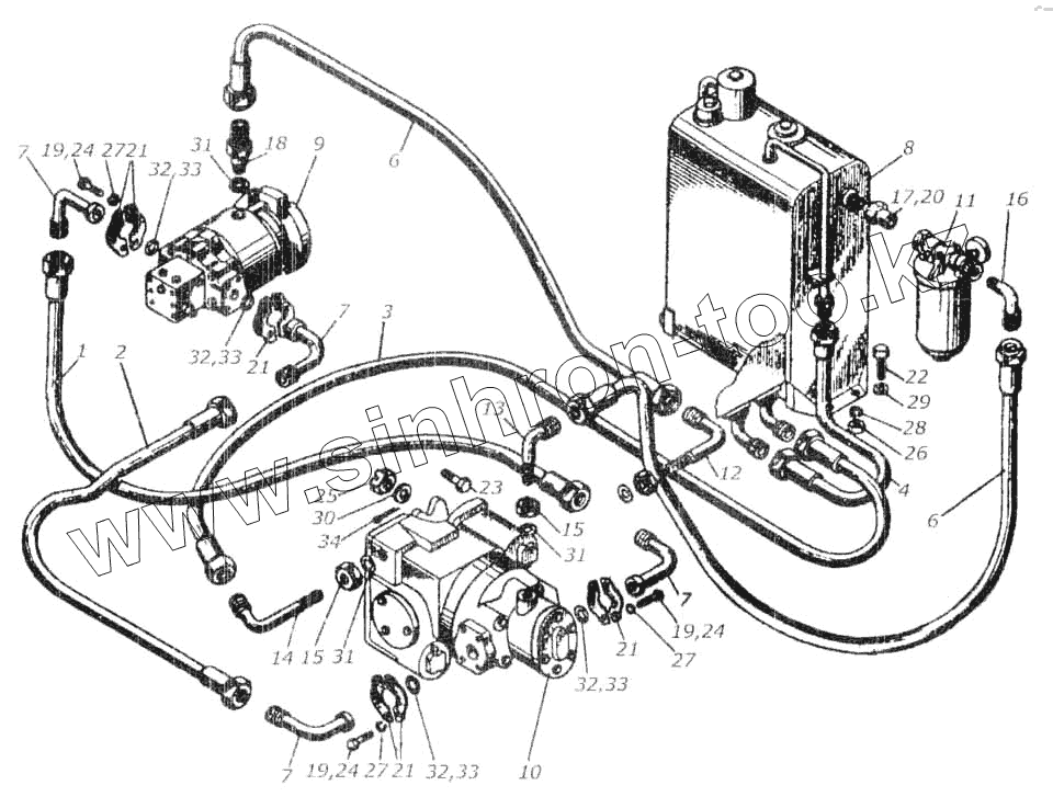 Каталог запасных частей к технике: Гомсельмаш КСК-100А. Гидросистема ходовой части КИЛ 0108000