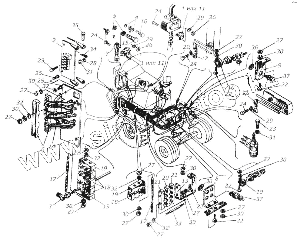 Каталог запасных частей к технике: Гомсельмаш КСК-100А. Крепление узлов гидрооборудования
