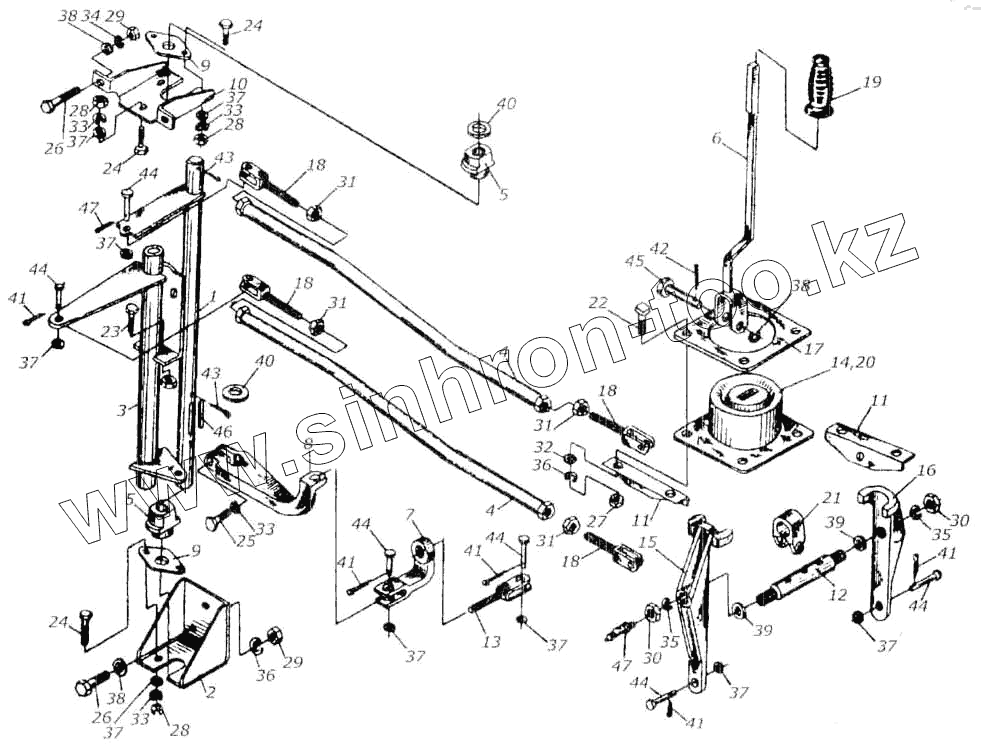 Каталог запасных частей к технике: Гомсельмаш КСК-100А. Механизм управления КПП КИЛ 0119050