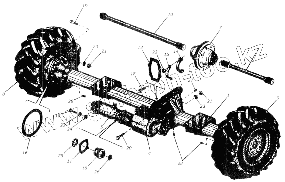 Каталог запасных частей к технике: Гомсельмаш КСК-100А. Мост ведущих колес комбайна КСК-100А КИЛ 0107000