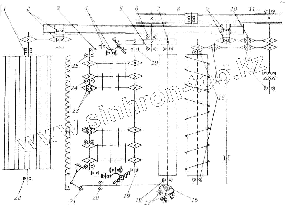 Схема расположения ремней и цепей жатки для уборки трав