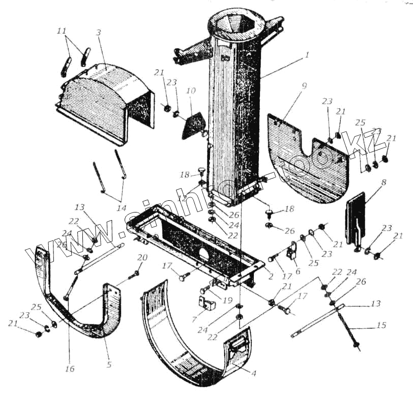 Каталог запасных частей к технике: Гомсельмаш КСК-100А. Швырялка. Каркас и основание силосопровода КИЛ 0102000