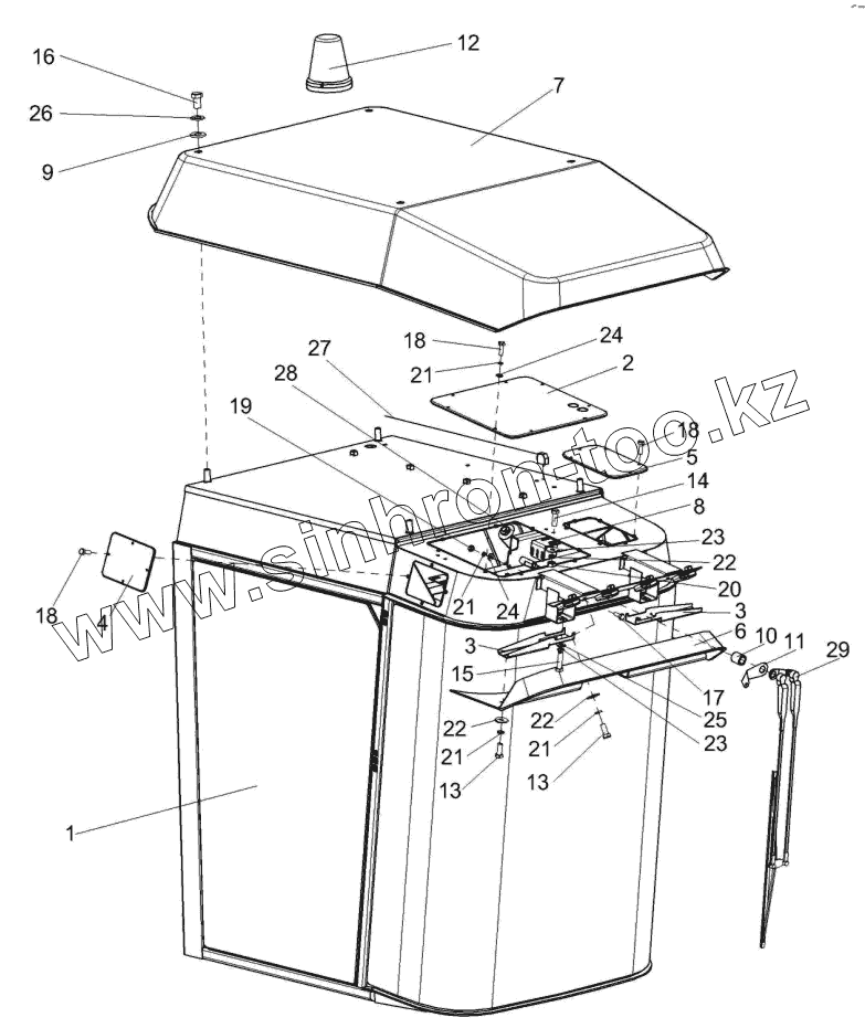 Каталог запасных частей к технике: Гомсельмаш КСК-600. Кабина КГС 0120000 (лист 1)
