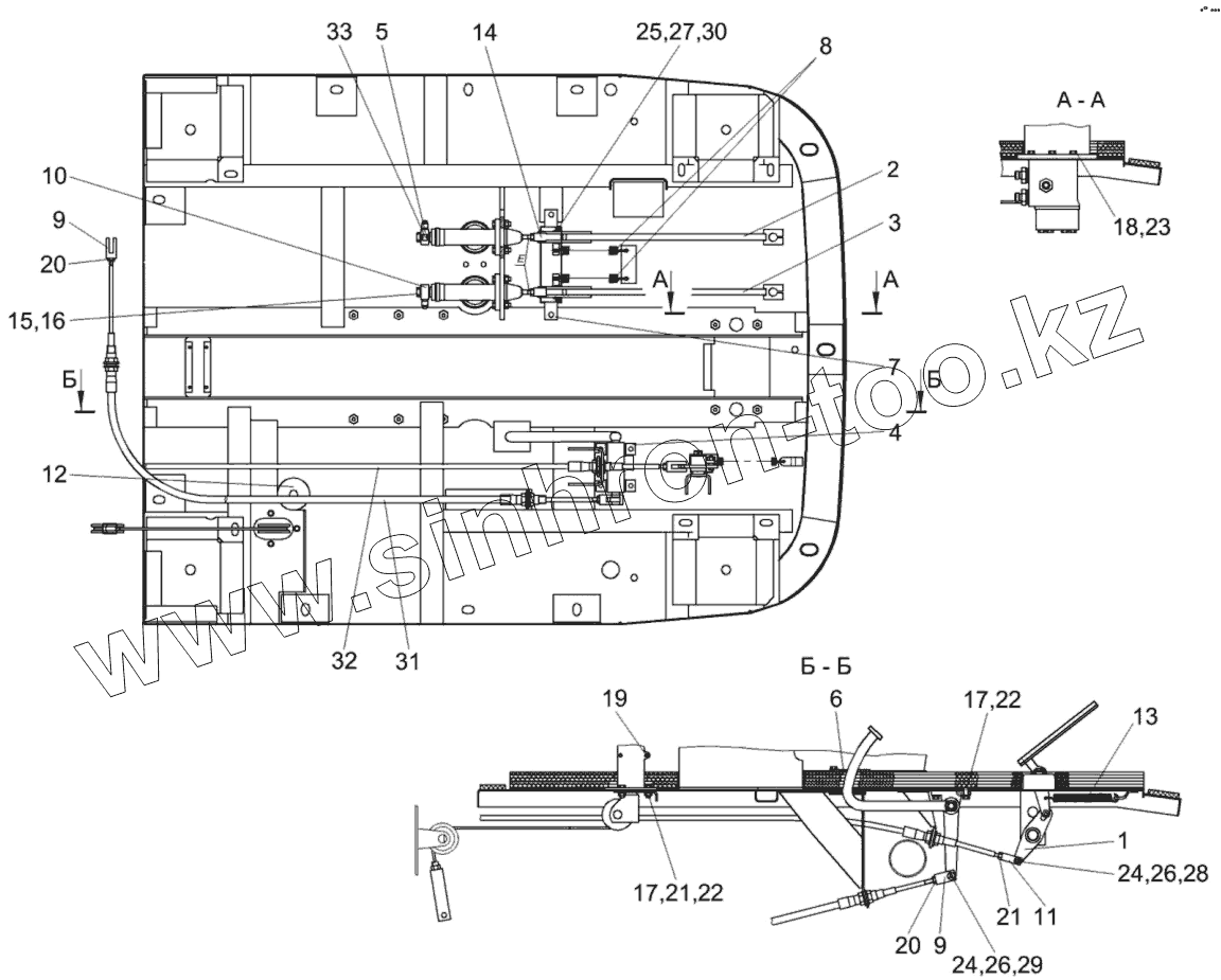 Каталог запасных частей к технике: Гомсельмаш КСК-600. Площадка управления КГС 0119000 (вид снизу)