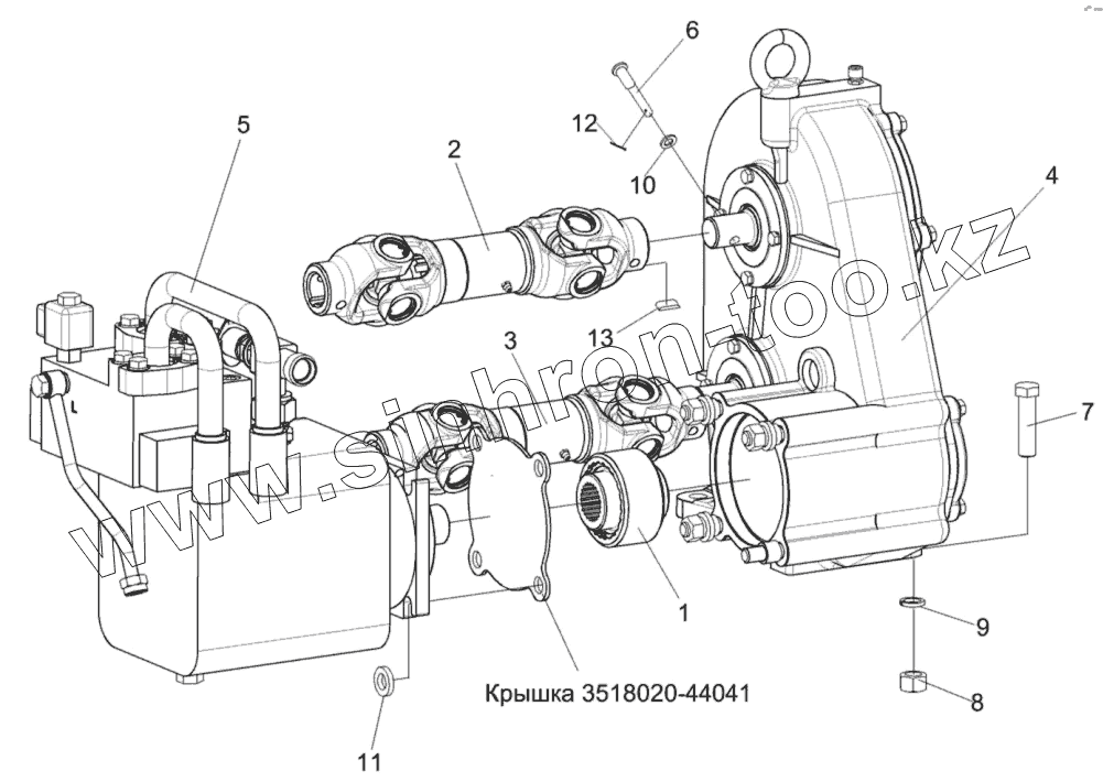 Каталог запасных частей к технике: Гомсельмаш КСК-600. Установка редуктора КГС 0114000