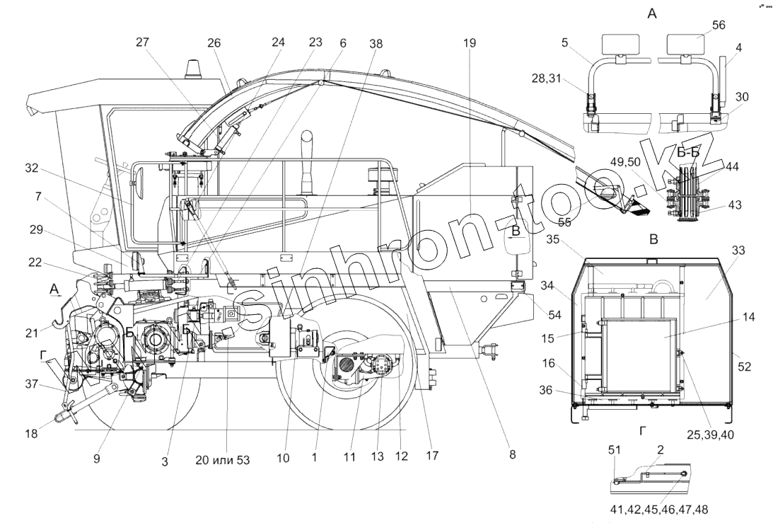 Каталог запасных частей к технике: Гомсельмаш КСК-600. Измельчитель самоходный КГС 0100000 (вид слева)