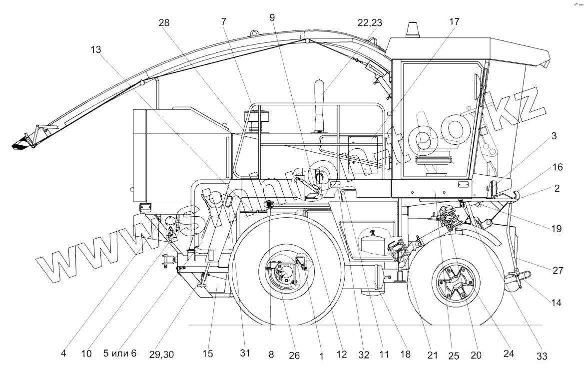 Каталог запасных частей к технике: Гомсельмаш КСК-600. Измельчитель самоходный КГС 0100000 (вид справа)