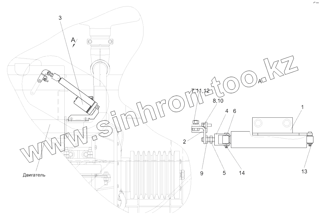 Каталог запасных частей к технике: Гомсельмаш КСК-600. Механизм управления топливным насосом КГС 0119120